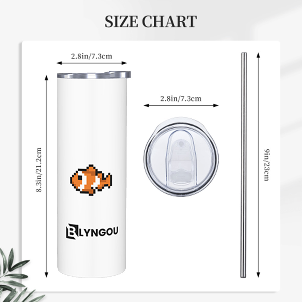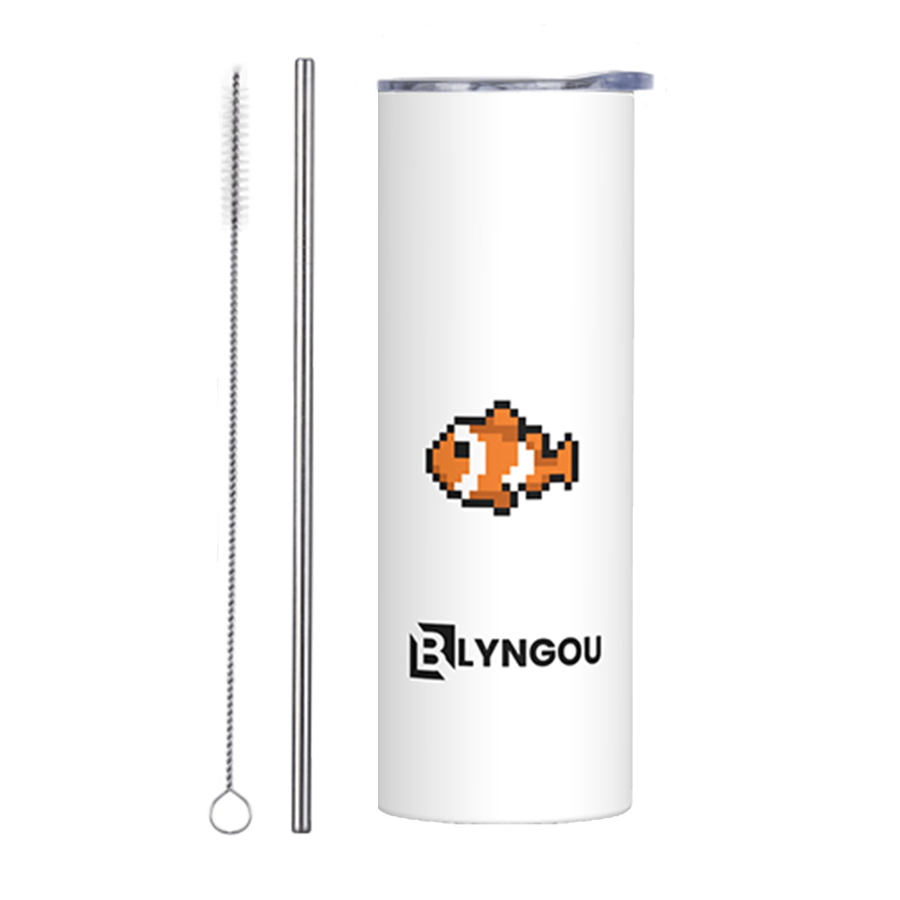 This 20oz (600ml) stainless steel thermos is designed for daily beverage insulation. It is made of high-quality stainless steel and provides excellent insulation performance. The bottle is equipped with a detachable stainless steel straw and cleaning brush for daily use and cleaning. The appearance is pure white, with a classic Marine theme pattern, which is both practical and interesting, suitable for all ages.